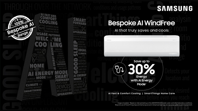 “અમારી નવી બીસ્પોક AI વિંડફ્રી એર કંડિશનર લાઈનઅપ સાથે અમે કૂલિંગની પાર જતું અસલી કમ્ફર્ટ પ્રદાન કરીને દાખલારૂપ હોમ કૂલિંગ ધરાવીએ છીએ. ગ્રાહકોને AI એનર્જી મોડ, થકી 30% સુધી ઊર્જા બચત, સ્માર્ટથિંગ્સ થકી સ્માર્ટ કનેક્ટિવિટી અને સ્માર્ટથિંગ્સ હોમ કેર સાથે પ્રતિબંધાત્મક જાળવણી મળે છે. અમારી નવી રેન્જ ઈનોવેશન પ્રત્યે સેમસંગની કટિબદ્ધતા દર્શાવે છે, જે ભારતના હવામાનના પજકારોને પહોંચી વળે છે,”એમ સેમસંગ ઈન્ડિયાના ડિજિટલ એપ્લાયન્સીસના વાઈસ પ્રેસિડેન્ટ ગુફરાન આલમે જણાવ્યું હતું.