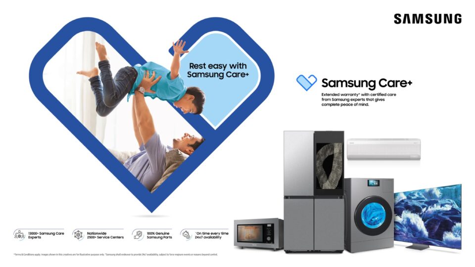 ગુરુગ્રામ, ભારત | ૧૨મી નવેમ્બર ૨૦૨૫ — ભારતની અગ્રણી કન્ઝ્યુમર ઈલેક્ટ્રોનિક્સ બ્રાન્ડ સેમસંગ દ્વારા આજે રેફ્રિજરેટરો, વોશિંગ મશીન્સ, એર કંડિશનર્સ, માઈક્રોવેવ ઓવન્સ અને સ્માર્ટ ટીવી સહિત હોમ એપ્લાયન્સીસ માટે વિસ્તારિત વોરન્ટી પ્લાન્સ સહિત તેની સેમસંગ કેર+ સર્વિસનું વિસ્તરણ કર્યાની ઘોષણા કરી હતી. દેશભરમાં ઘરો ઉજવણીથી ધમધમી રહ્યા છે ત્યારે સેમસંગ આ તહેવારનો સમયગાળો બહેતર રક્ષણ અને સુવિધા થકી ગ્રાહકોને વધુ મનની શાંતિ આપીને વધુ પુરસ્કૃત બનાવવાનું લક્ષ્ય ધરાવે છે. ગ્રાહકો 1-4 વર્ષની શ્રેણીમાંથી પ્લાન પસંદ કરી શકે છે, જે દિવસના રૂ. 2 જેટલી માતબર રકમથી શરૂ થતી કિંમતો સાથે વ્યાપક રક્ષણ અને સુવિધા પ્રદાન કરે છે.