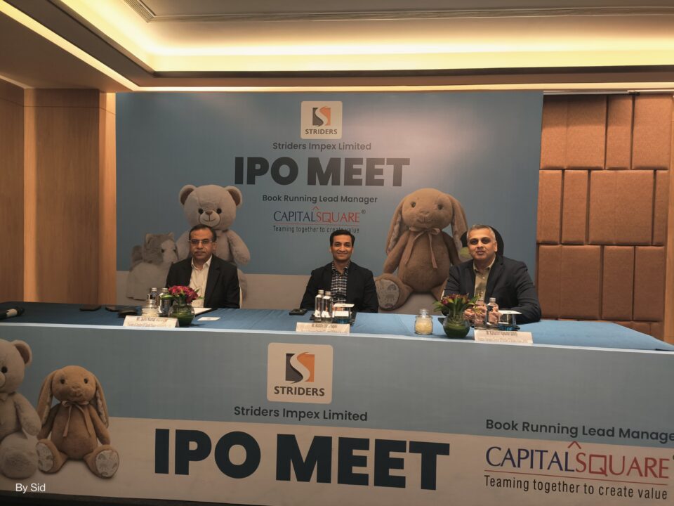 અમને સ્ટ્રાઇડર્સ ઇમ્પેક્સ લિમિટેડને તેના આગામી આઈપીઓમાં ટેકો આપવાને લઈને ગર્વ છે અને અમે સ્થાયી ધોરણે વૃદ્ધિ કરવા અને સાર્થક લાંબા ગાળાના મૂલ્ય પહોંચાડવા માટે તેના લાંબા ગાળાના વિઝનમાં વિશ્વાસ ધરાવીએ છીએ.”