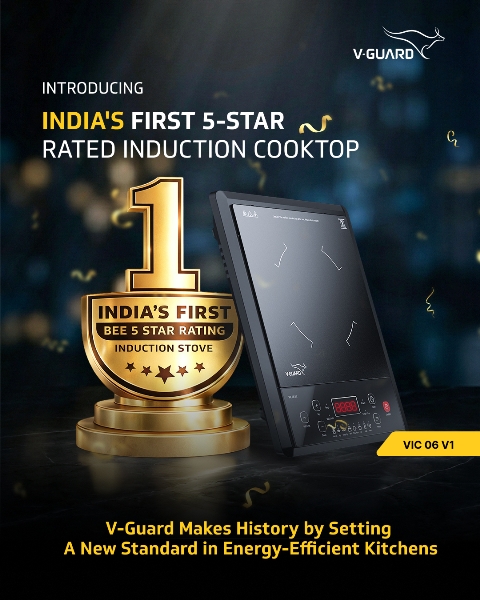 ભારત | ૧૨મી જાન્યુઆરી ૨૦૨૬ — ભારતની અગ્રણી કન્ઝ્યુમર ઇલેક્ટ્રિકલ અને ઇલેક્ટ્રોનિક્સ બ્રાન્ડ, V-Guard ઇન્ડસ્ટ્રીઝ લિમિટેડે તેના ઇન્ડક્શન કુકટોપ મોડેલ VIC06V1એ એક સીમાચિહ્નરૂપ સીમાચિહ્ન હાંસલ કર્યું છે, જે અંતર્ગત તેણે ભારતનું પ્રથમ ઇન્ડક્શન કુકટોપ બન્યું છે જેને બ્યુરો ઓફ એનર્જી એફિશિયન્સી (BEE) તરફથી 5-સ્ટાર (★★★★★) ઉર્જા કાર્યક્ષમતા રેટિંગ મળ્યું છે.